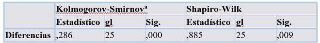 Tabla 2. Resultados de la prueba de normalidad Shapiro-Wilk